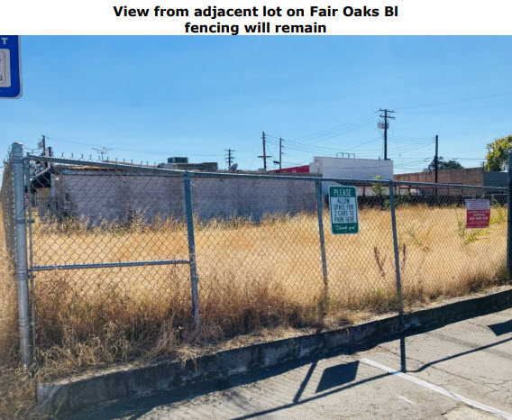The subject site is improved with curb, gutter, sidewalk and bus stop on Fair Oaks Boulevard side and will not have any vehicular access on that side of the parcel. Vehicular access will be from Angelina Avenue and Buyer will be responsible for sidewalk improvements on that side of the parcel.