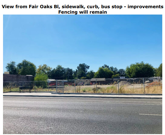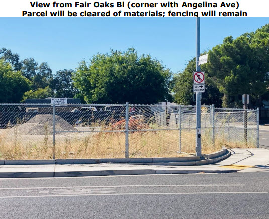 The subject site is improved with curb, gutter, sidewalk and bus stop on Fair Oaks Boulevard side and will not have any vehicular access on that side of the parcel. Vehicular access will be from Angelina Avenue and Buyer will be responsible for sidewalk improvements on that side of the parcel.