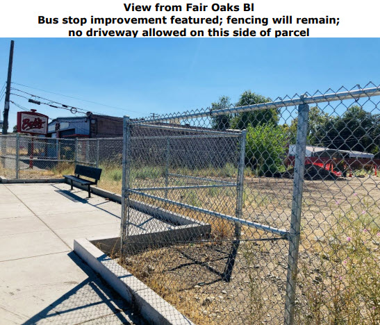 Bus stop improvement featured; fencing will remain; no driveway allowed on this side of parcel
